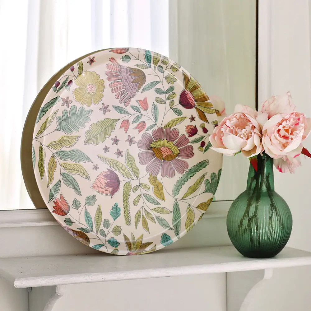 Ce plateau rond  à l’inspiration indienne est idéal pour égayer la table ou servir avec style. Pour les petits déjeuners et des plateaux-repas festifs, ce plateau léger est idéal pour transporter vos repas. Il peut aussi servir de décoration sur la table. C’est aussi bien un objet pratique que déco.