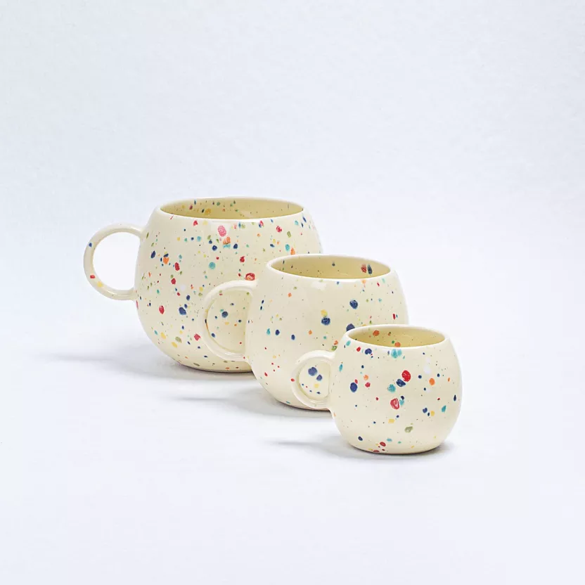 On est tombé sous le charme de ces grands mugs faits à la main au motif jaune moucheté ! Ils sont faits pour vous accompagner tout au long de la journée, à la fois simple et élégant !