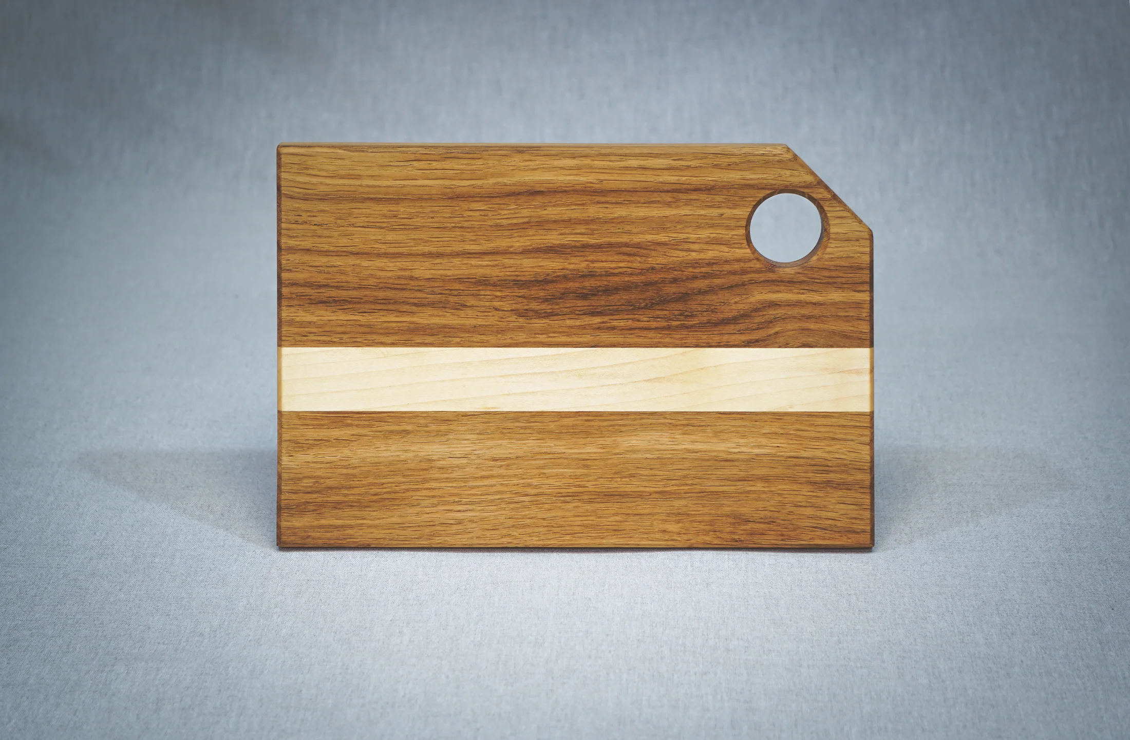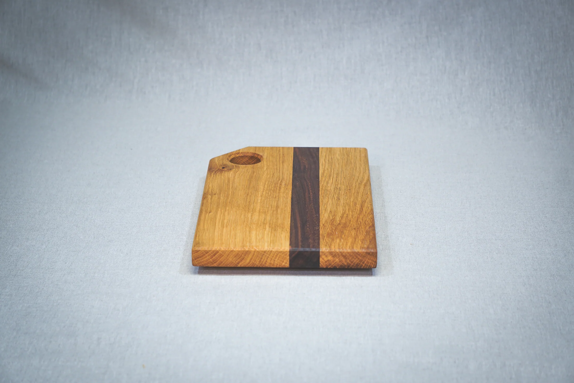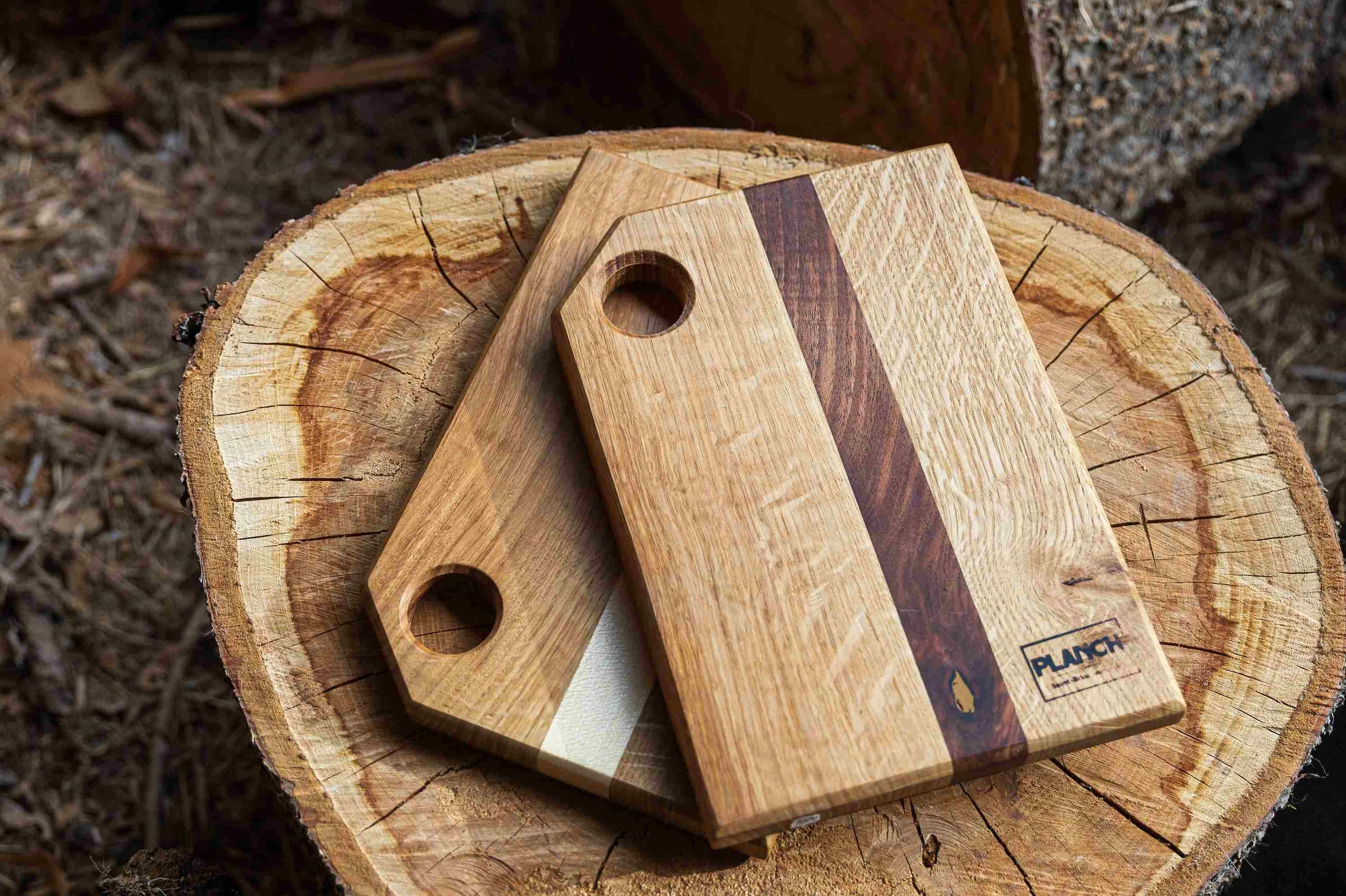 Argoat c’est l’autre petite planche à découper parfaite pour l’apéro ou les petits légumes comme les carottes, les oignons. Elle peut aussi servir de planche de présentation. C’est une planche à la forme simple, légèrement biseautée sur un côté. Elle est fabriqué en chêne massif avec une bande d’érable ou de noyer qui la rend unique! L’alliance de ces deux essences crée un contraste à la fois doux et raffiné. C’est la planche compact pratique à avoir chez soi.