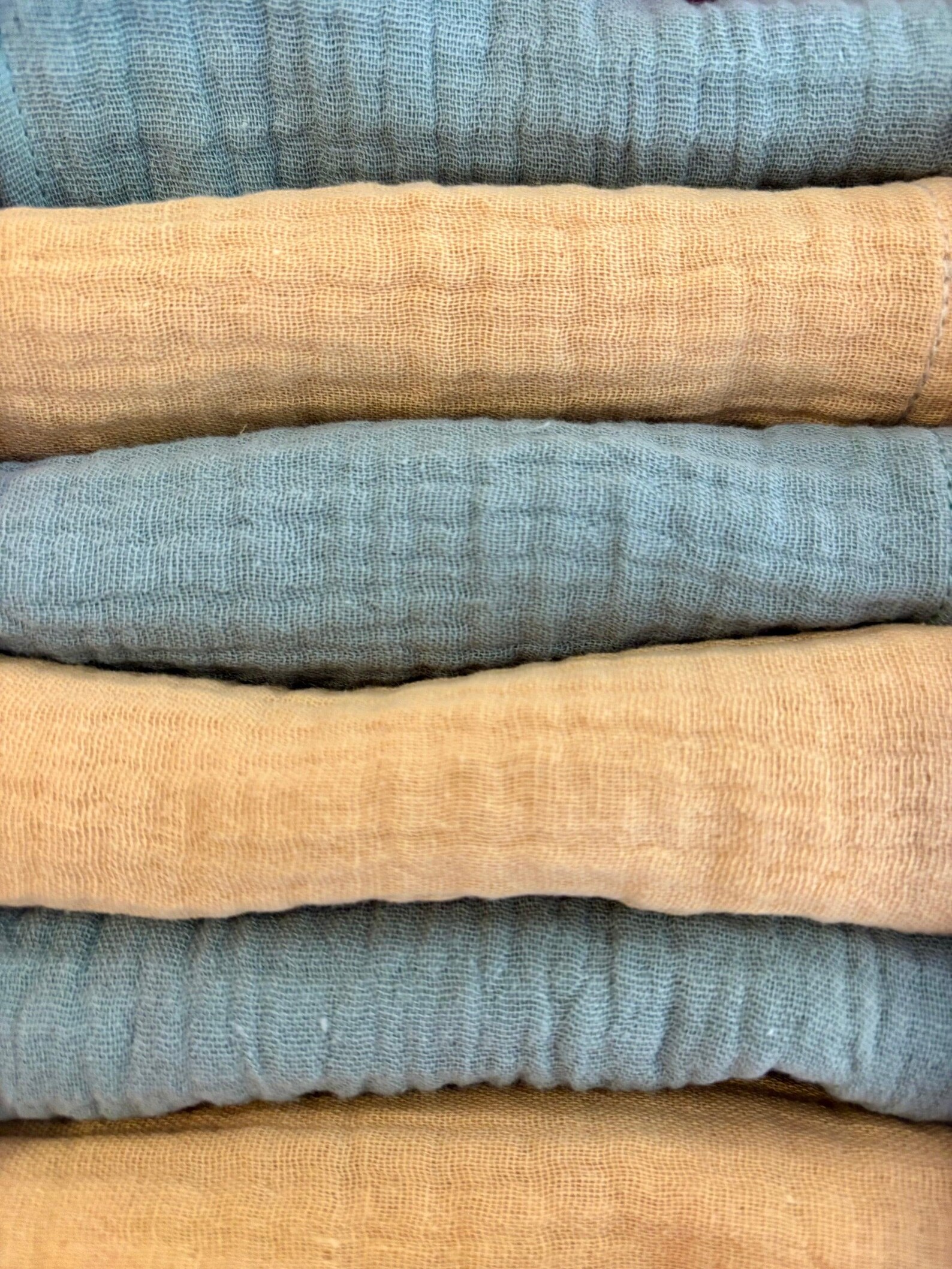 Voici un lot de 6 petites serviettes de table toute douces et légères ! Elles sont en gaze de coton unies jaune et vert de gris, pour une table à la fois unie et dépareillée, des tons naturels et chaleureux. Son format est idéal pour les repas du quotidien, les goûters, apéro entre amis… Aussi pratique qu’une feuille d’essuie-tout, vous pourrez en changer quotidiennement sans vous soucier des corvées de repassage grâce à son côté froissé !