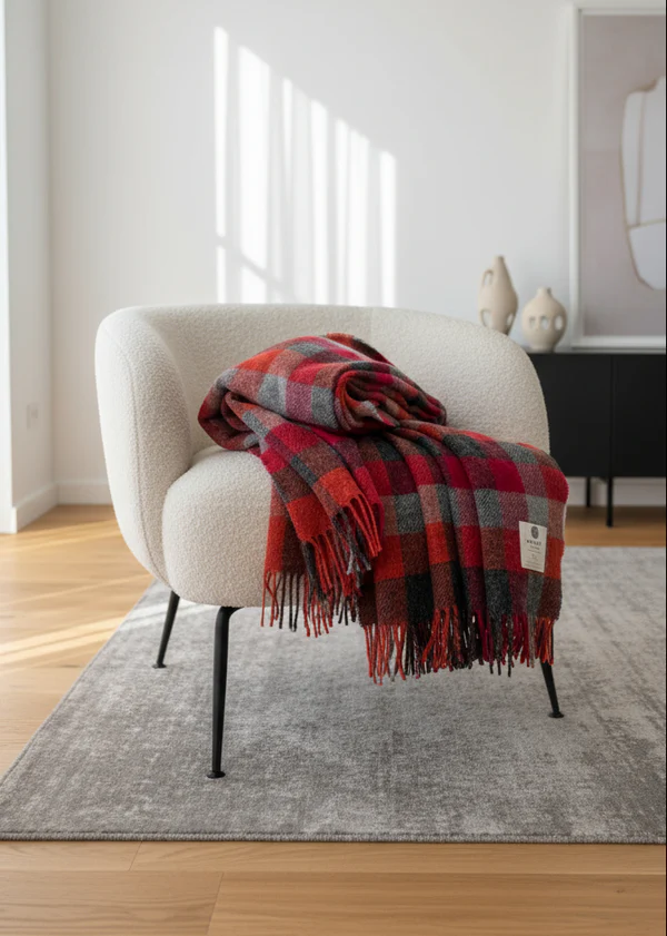 On est tombé sous le charme de ce plaid dans les tons rouges à carreaux qui rappelle le réconfort d’un feu de cheminée. Qui n’aime pas se blottir au coin du feu en hiver ? Ce plaid incarne le confort chaleureux du foyer grâce à ses tons vibrants et chauds.