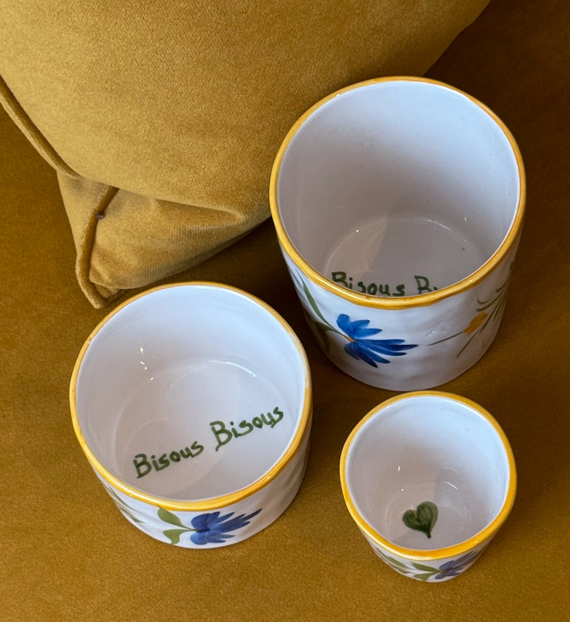 Pour un grand café, un thé, un chai latte… la tasse haute au format parfait! Chaque tasse est faite à la main et peinte à la main au Portugal. On adore les détails fleuris vintage et son agréable bisous en fond de tasse !